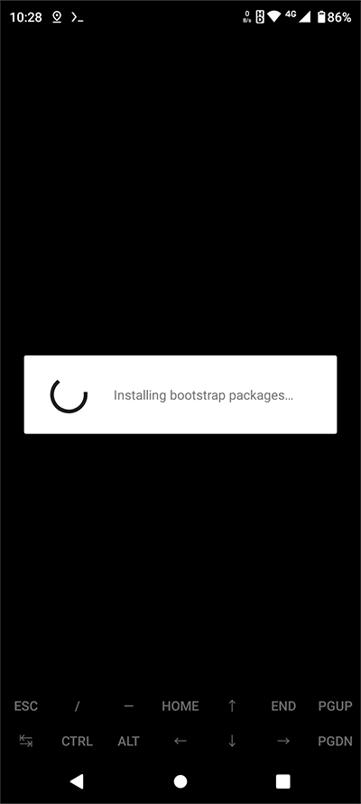 1. 初始化 Termux:首次启动时,系统会自动安装引导程序包(Installing bootstrap packages),请耐心等待完成。