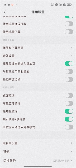 如何在QQ音乐小米版中切换服务?