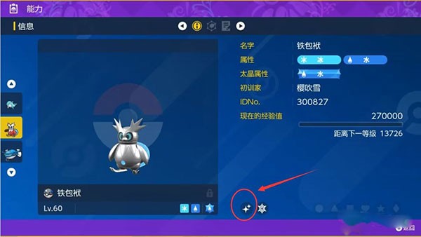 2、在信息页面右下角,若看到两个四角星标志,即表示该宝可梦为闪光个体。