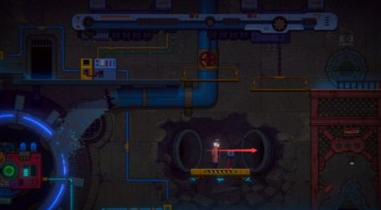 原路返回至升降台区域,这次从右侧管道口进入新房间,使用刚获得的钥匙打开左上方上锁的水阀控制间门。