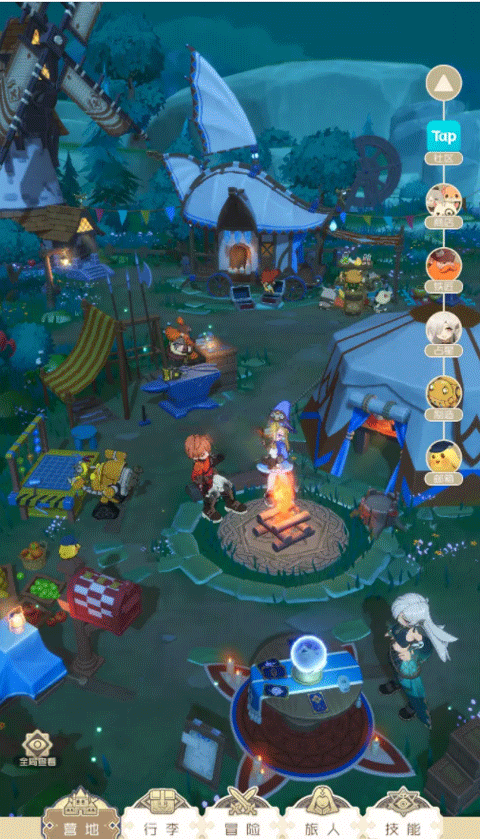 营地是游戏的核心交互区域,集技能抽取、装备打造与物品购买于一体。其中,铁匠铺用于装备制作与图纸合成,占星台则用于抽取技能。