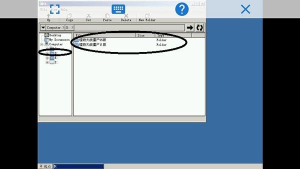 5、进入模拟器主界面后,点击左侧“D盘”文件夹,找到标有蓝色光标的版本文件,双击即可启动游戏。