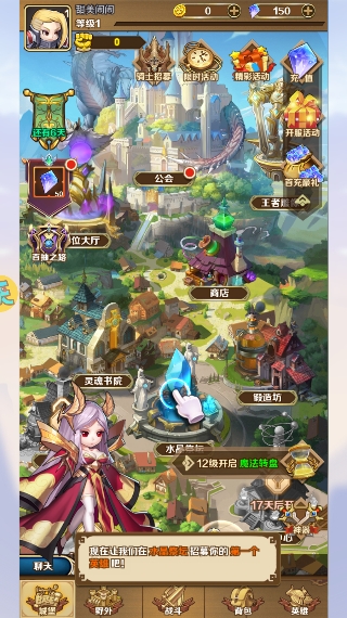 2、进入主界面后,点击【水晶祭坛】进行首次英雄招募。