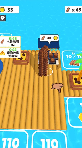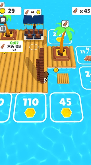 3、用赚取的金币扩展木筏面积,为后续建造设施打下基础。