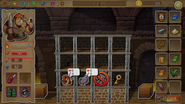 4. 注意生命与灯火状态:血量归零或灯火耗尽将导致冒险失败。若资源不足,可通过现有物品合成恢复道具;若选择直接退出当前地牢,所有未保存的进度将被清空,务必谨慎操作。