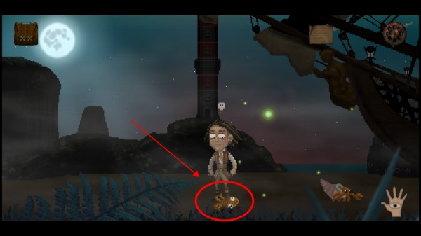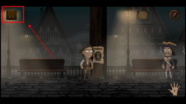 6、以首个难题为例:需修改通缉犯画像。先向屏幕左侧移动,直至抵达乌贼所在位置,点击手掌拾取该道具。