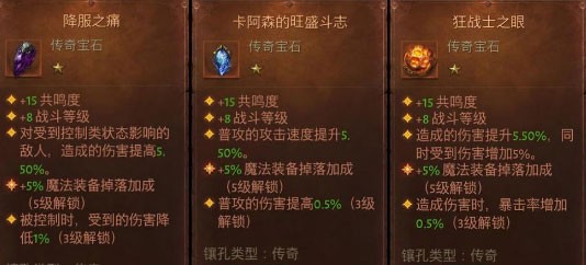 降服之痛、卡阿森的旺盛斗志、狂战士之眼、连锁宝石等均适用于全职业,在不同战斗模式下各有优势。