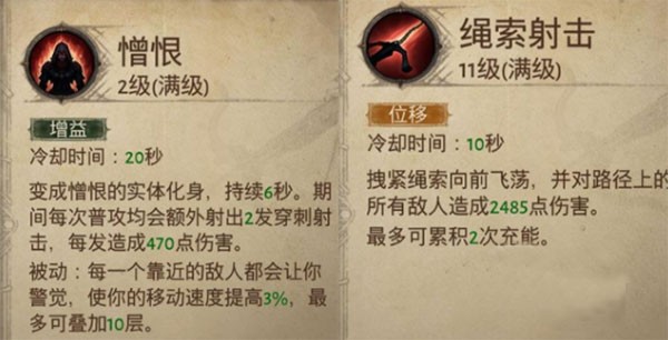 - 憎恨:核心爆发技能,开启后大幅提升移动速度与普攻伤害,是猎魔人输出循环的基石。