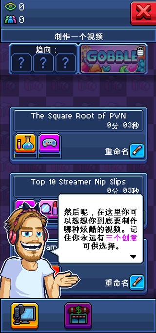 1、通过制作视频获取观看量与订阅数,解锁并购买各类炫酷设备、时尚服饰、个性家具,甚至还能养一只专属宠物!