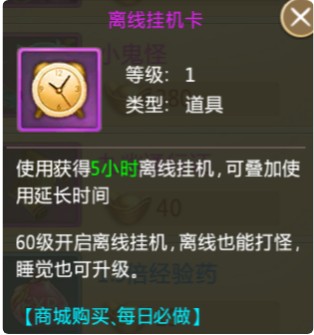 离线挂机卡:使用后可额外增加挂机时长。