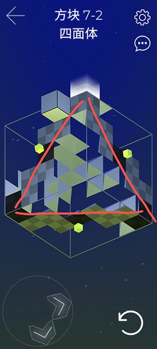 作为一张全地图任务关卡,“雪人”要求玩家在立方体全部六个面上完成收集。整张地图以滑行机制为主,仅有一个固定方块,其余任务点均为临时方块——走过即消失,因此每一步都需谨慎规划。
