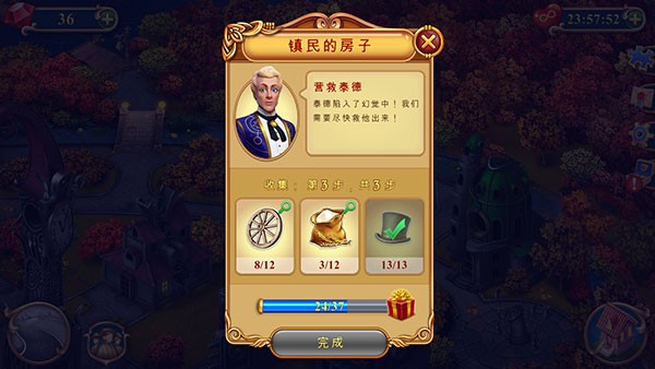 2、任务通常要求收集三种特定物品,点击任一目标物品可自动跳转至对应关卡。