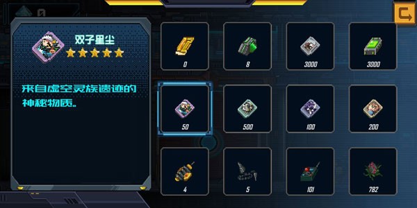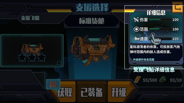 8、“支援库”中可查看全部飞船信息,并进行获取与升级操作。