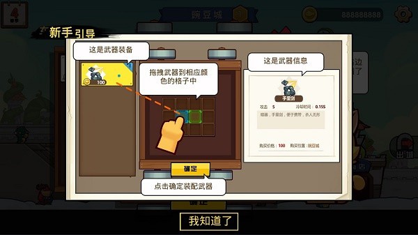 5、途中可能遭遇小怪物袭击,此时需将武器装备拖拽至车厢中对应颜色的格子内,并点击“确定”完成装配。