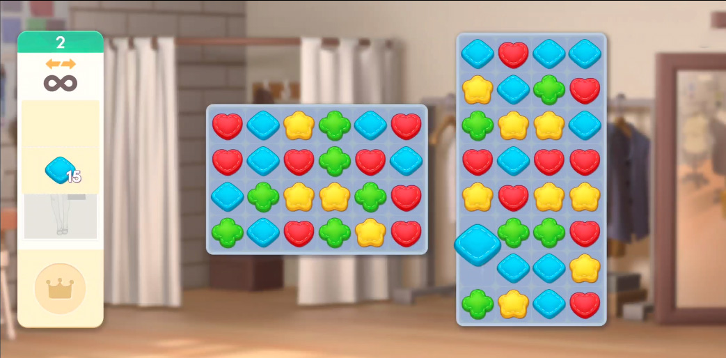 1. 眼影:通过消除填满各色格子,集齐后触发全屏爆炸,清空棋盘。
