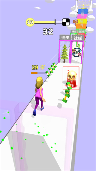 2、收集健身器材、护肤品等青春道具可有效逆转年龄,让角色变得更年轻;