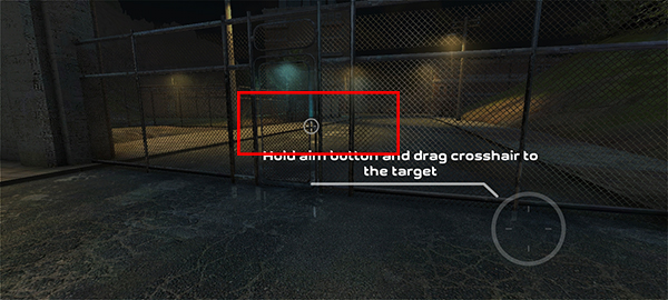 4、靠近目标门锁后,点击右侧准镜进行瞄准,随后以暴力方式直接击碎门锁开门。