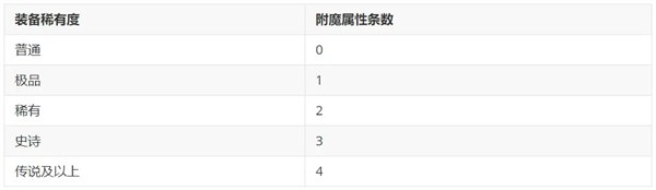 · 附魔属性:附魔条数与装备品质挂钩,可在锻造台进行附魔操作。附魔属性同样分五档品质(白<绿<蓝<紫<橙)。当装备拥有3条或以上传说级(橙色)附魔属性时,装备将呈现发光特效。不同部位可附魔的属性类型不同,详情可在游戏内附魔界面点击右上角蓝色按钮查看。