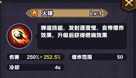 - Lv.45:初始获得1张【火球增幅】