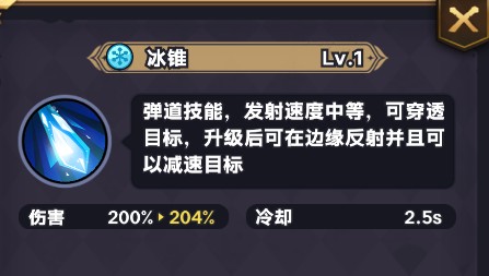 - Lv.45:初始获得1张【冰锥增幅】