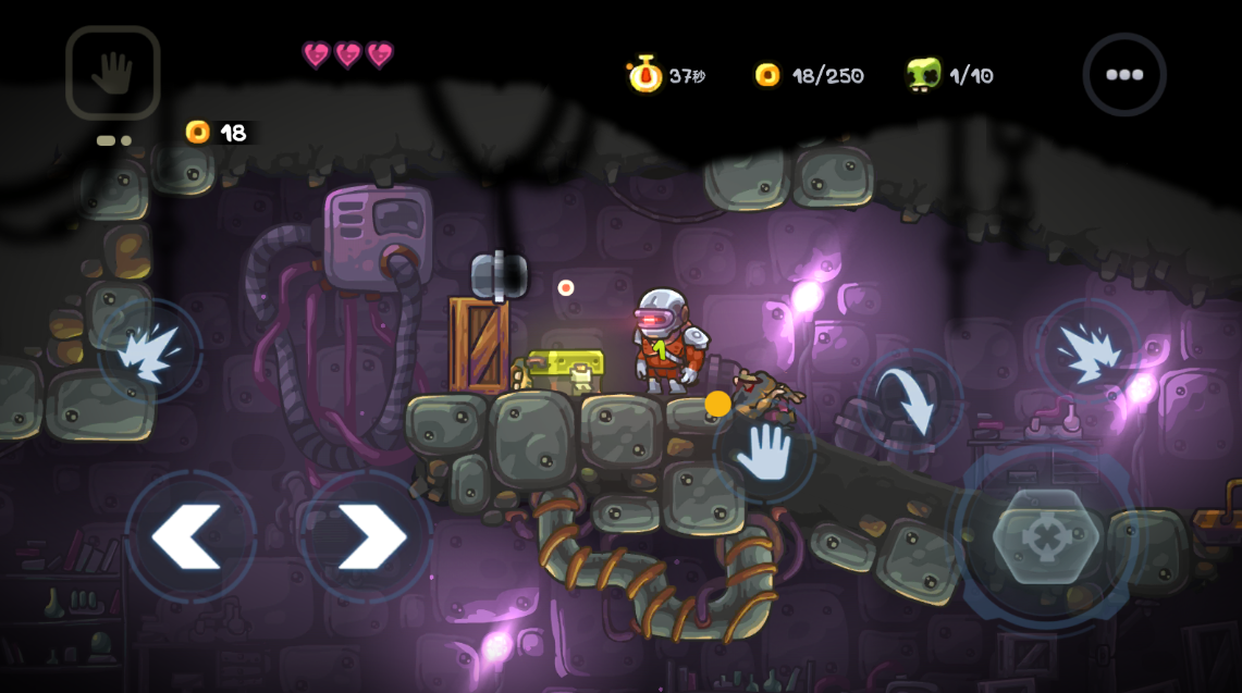 4、地图中设有隐藏机关,当靠近时界面会显示“手”形交互提示,点击即可触发机关,开启新路径或获取资源。