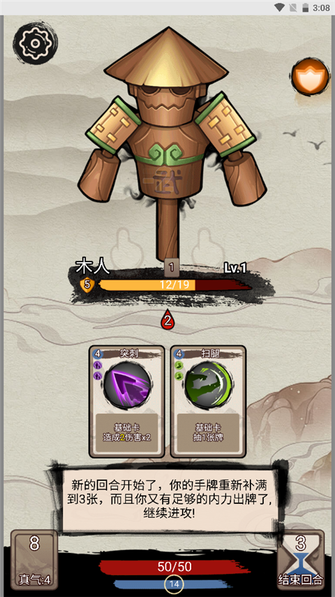 - 新回合开始时,手牌将自动补满至3张,内力也同步回满,可继续展开进攻。