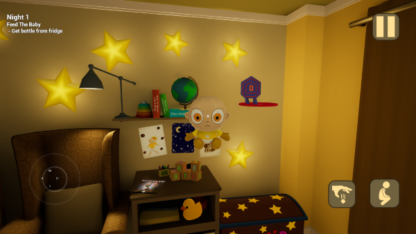 恐怖婴儿是一款融合了日常照料与心理惊悚元素的沉浸式恐怖游戏。玩家将扮演一名保姆,负责照顾一位身穿黄色连体衣的婴儿。起初,你需要悉心完成喂奶、换尿布、哄睡等基础育儿任务,但随着游戏深入,你会逐渐发现这个婴儿行为异常——眼神诡异、动作突兀,甚至开始展现出令人毛骨悚然的一面。平静的育儿日常悄然崩塌,取而代之的是步步紧逼的不安与恐惧。