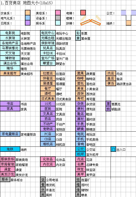 在《百货商场物语》中,采用双电梯布局可显著提升顾客流动效率。由于游戏机制限制(如唯一建筑与最大宽度存在冲突),无法实现全部24个特色商群共存。因此,合理取舍后,本方案成功整合了23个高效商群,并确保双侧电梯均可直达15楼,极大优化了高层客流覆盖。