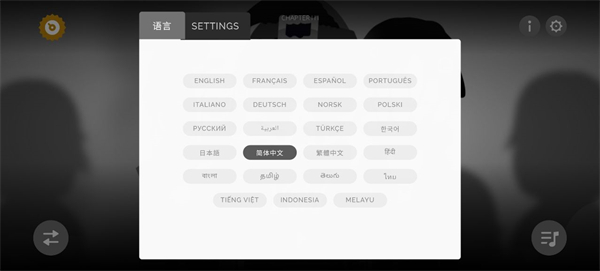 2、点击右上角的设置图标,在语言选项中选择“简体中文”,便于更顺畅地操作。