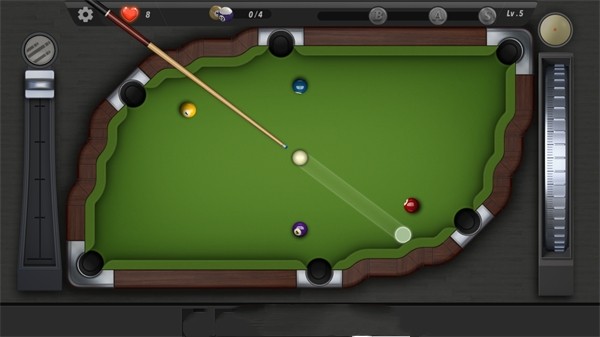 1、力道与方向控制:向左拉动屏幕调节击球力度,向右滑动则设定击球方向,两者配合决定母球行进轨迹。