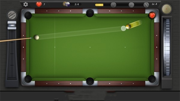 2、目标与限制机制:根据关卡提示,将指定花色或编号的球击入任意袋口即可得分。注意左上角显示的爱心数量,代表当前剩余击球次数——一杆清台是最高效的选择!